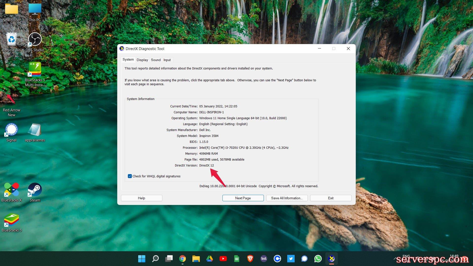 通过按Windows + R快捷方式键打开运行对话框。在搜索栏,键入DXDIAG并按Enter。DirectX诊断工具窗口将弹出。检查系统上安装的DirectX版本。如果DirectX版本不是DirectX 12或更高版本,则必须进行更新过程。
