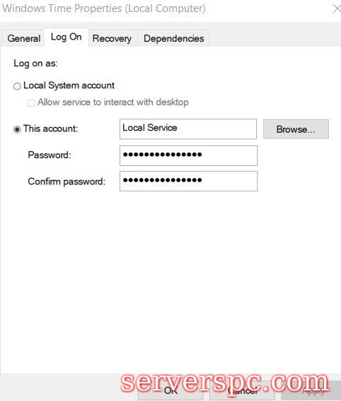 现在在Windows Time属性中,导航到垂直菜单的“登录”选项卡,然后选择“本地系统帐户”选项。现在在选项允许服务允许服务与台式机交互之前打勾。应用更改。此后,重新启动计算机。