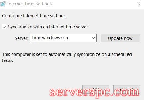 现在,在Internet时间设置中,打开服务器附近的下拉订单,选择“ option time.nist.gov”,然后单击“现在的更新”选项卡。 (您也可以尝试pool.ntp.org服务器,因为它可以有效解决上述问题)。