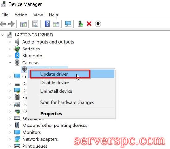 右键单击网络摄像头驱动程序,然后从sub-menu.once完成的theupdate驱动程序,现在检查网络摄像头是否正常工作。