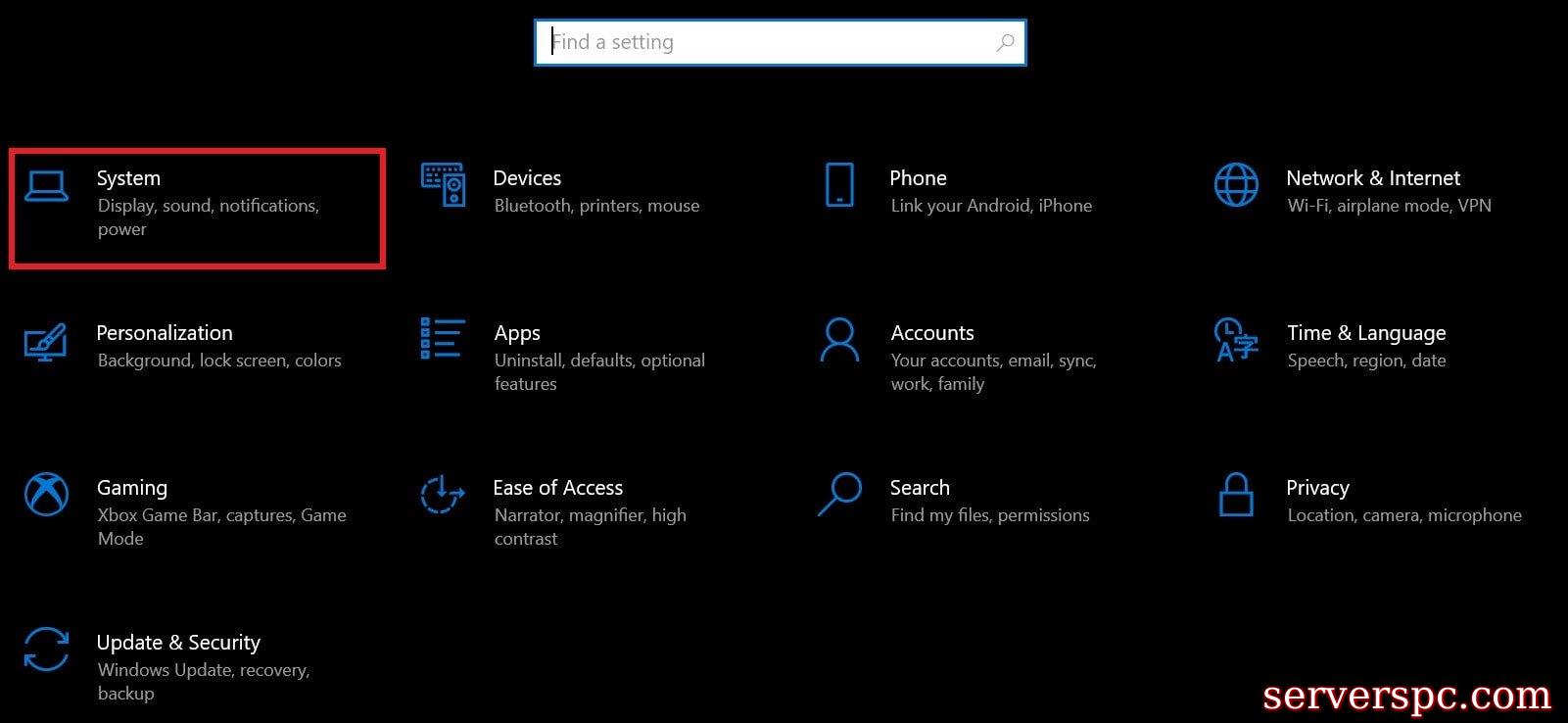 然后单击Systemon在下一个屏幕中的左侧面板单击显示
