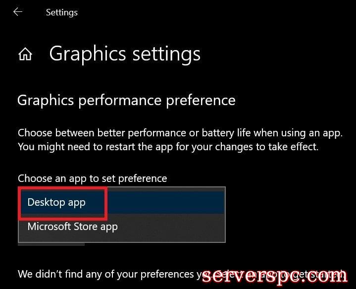 单击图形设置,如果您希望为桌面应用程序分配GPU,然后单击下拉列表中的桌面应用程序