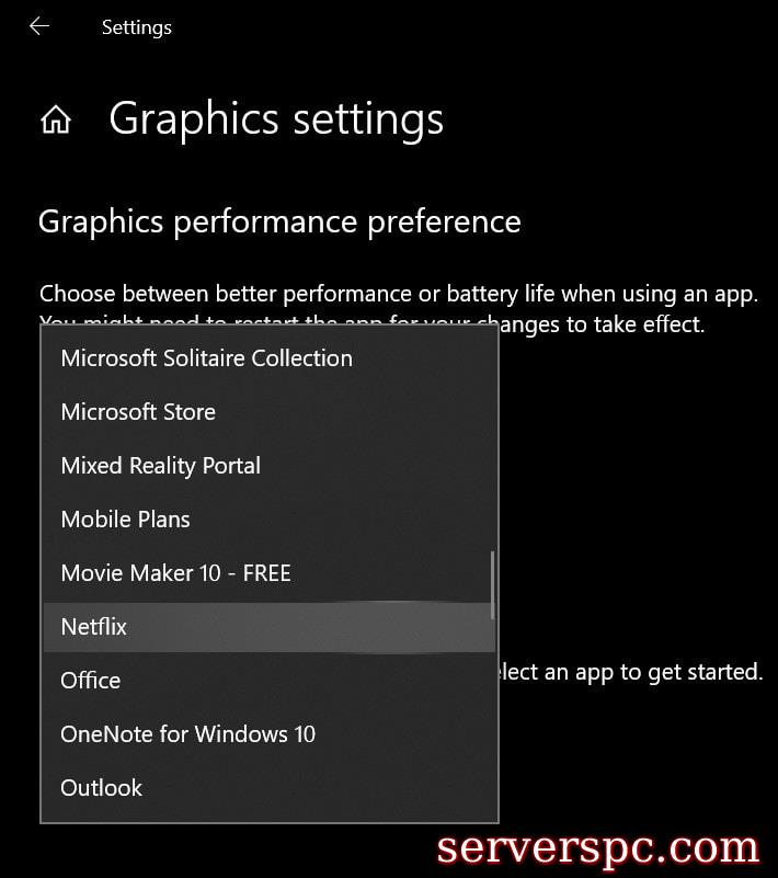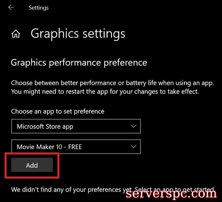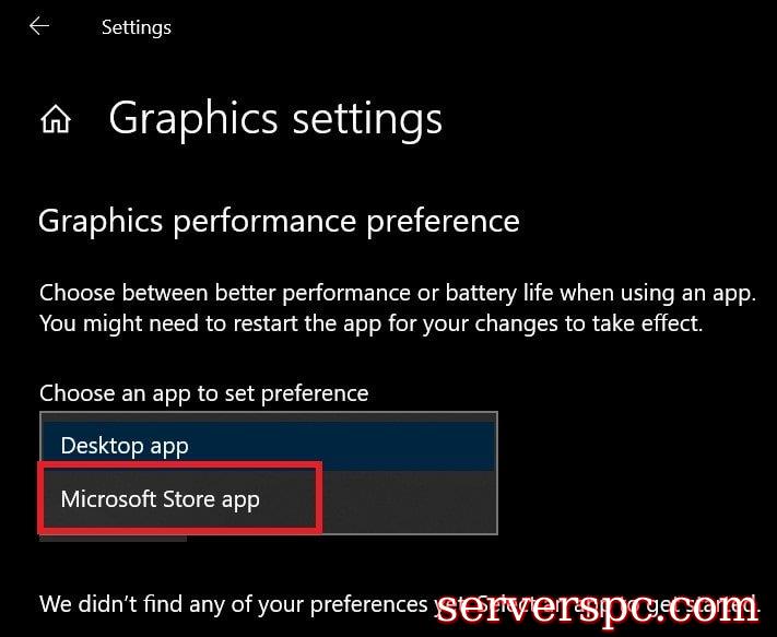另一方面,如果您希望为Microsoft Store应用程序设置GPU,则这些步骤将与图形设置有所不同。以下步骤是上一节中的步骤的延续。在上一节中,我们为桌面应用程序设置了默认的GPU,但此处为Microsoft Store应用程序做了同样的操作。
