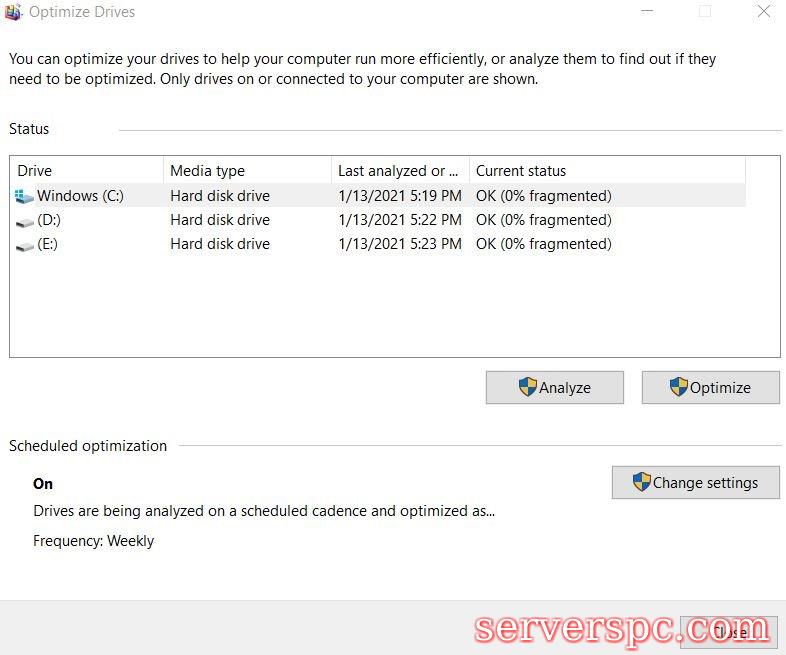 这里选择SSD驱动器,然后单击“优化”选项卡。完成后,Windows 10上的SSD速度现在可以提高。虽然如果没有,请按照下一个修复。FIX2:选择高功率计划: