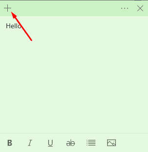 为了使用粘稠笔记创建笔记,只需启动该工具,它将自动打开新的音符。如果您想添加更多笔记,则只需单击“注释”纸条上左上方的+图标。另外,您也可以按CTRL+nwith焦点中的粘性音符工具,以使用键盘创建新的音符。如果您将工具固定在任务栏上,则右键单击任务栏的图标并选择Thenew NoteOption是创建新笔记的另一种方法。