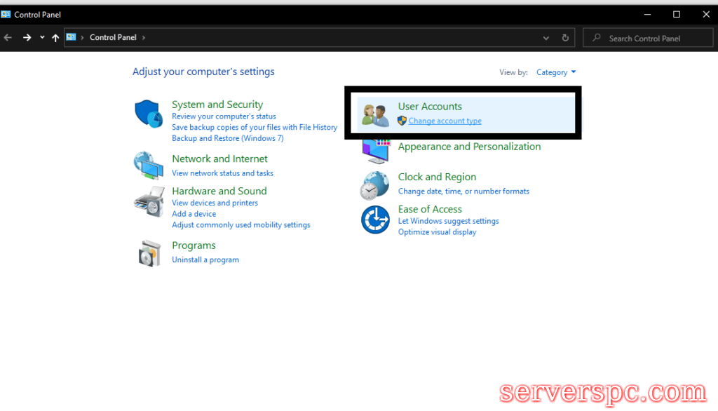 单击Windows搜索栏,查找控制面板。打开它。在用户帐户中,您会找到一个更改帐户类型选项。点击它。