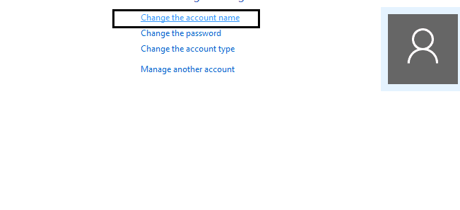 选择要更改其名称的本地帐户,然后单击更改帐户名称选项。
