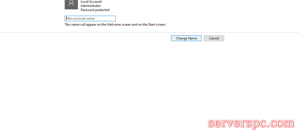 Advertisements设置您想要的帐户的名称。单击更改名称,然后重新启动。