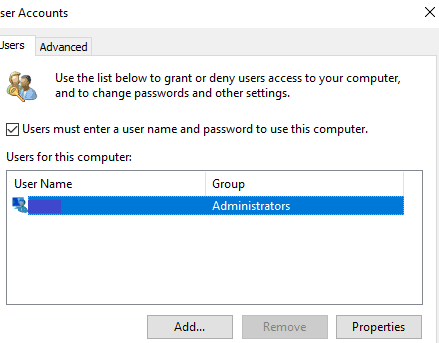 在Windows搜索栏上进行广告单击,并查找Netplwiz。在结果中看到它后,将其打开。它将打开旧用户帐户设置。单击“用户”选项卡。选择要更改其名称的帐户。然后单击属性。