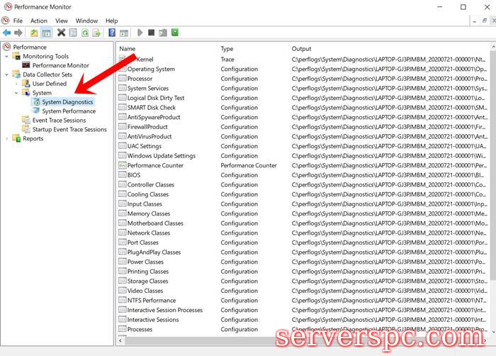 测试应该几分钟才能完成。完成此操作后,请从左菜单栏中转到报告部分。然后转到系统系统诊断并单击您的PC名称。然后,您应该查看系统诊断报告。向下滚动,直到达到硬件配置为止。