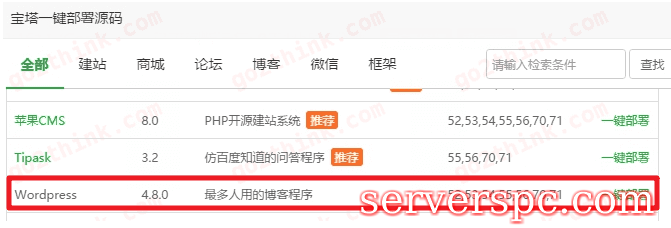 一键部署 WordPress。