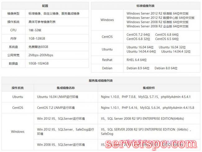 比格云主机提供多种配置选择。其中包括:镜像类型、操作系统、CPU、内存、系统盘、数据盘、带宽,您可以根据实际需要选择,不同配置项的选择范围如下:
