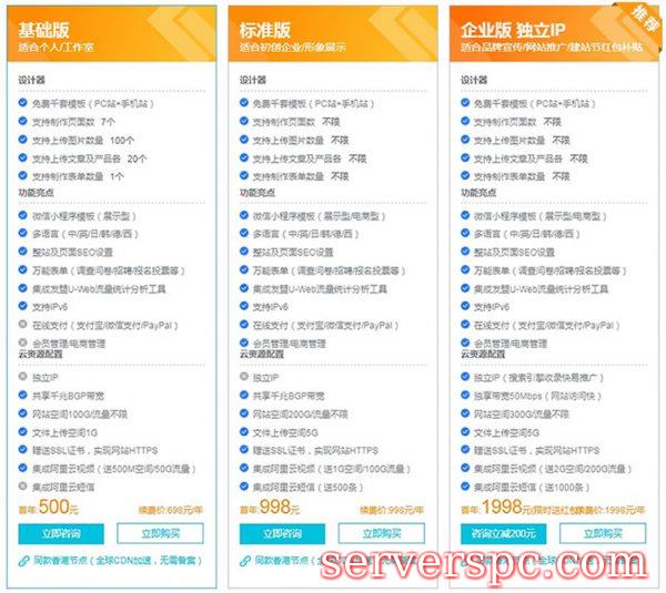 阿里云速成美站产品版本有以下几种: