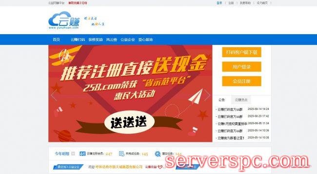 如何利用云服务器赚小钱?云服务器挂机赚钱项目之前已经介绍过一个了,可以进入《空闲服务器如何挂机赚钱?如何利用空闲云服务器赚钱》详细了解,其实云服务器挂机赚钱项目有很多的,不止一个。比如,还有这个云赚网的挂机赚钱项目。有的网友说自己手上有闲置云服务器,或者有的云服务器只挂了公司一个网站,想利用这台服务器赚点小钱,请教大大们怎么操作呢?今天,云服务器网(yuntue.com)小编介绍一下别一个云服务器挂机赚钱项目吧,虽然发不了财,但可以赚点小钱啊!