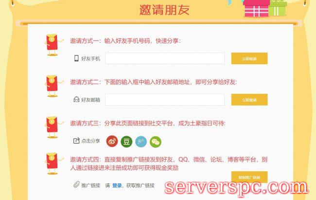 邀请方式三:分享此页面链接到社交平台,成为土豪指日可待:点击分享