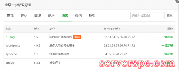 建议用宝塔面板来一键部署博客程序,上面有各种主流的博客程序,部署方便,对新人友好,省掉了一些学习时间。目前,宝塔面板支持部署的博客程序如图: