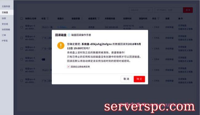 基于创建的“磁盘快照”进行数据回滚的操作截图:
