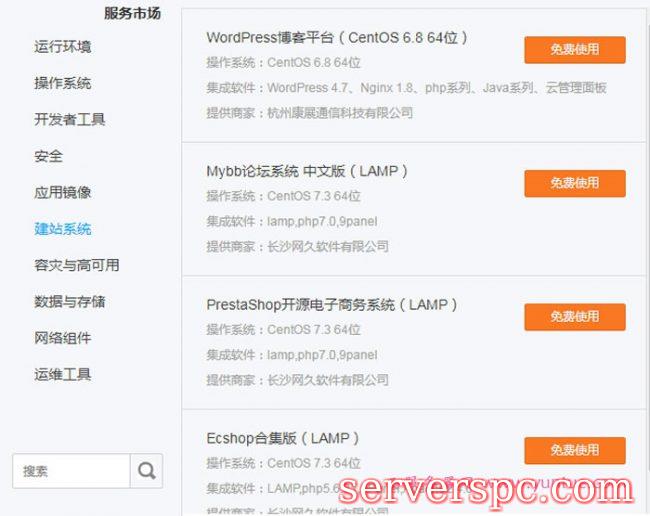 在选择镜像市场的时候,首先我们一定要知道我们网站的程序语言和数据库是什么版本(具体可以问网站程序员或者程序开发商),然后,我们在对应的在镜像市场找对应的镜像,可以通过关键字搜索查询适合我们的镜像。