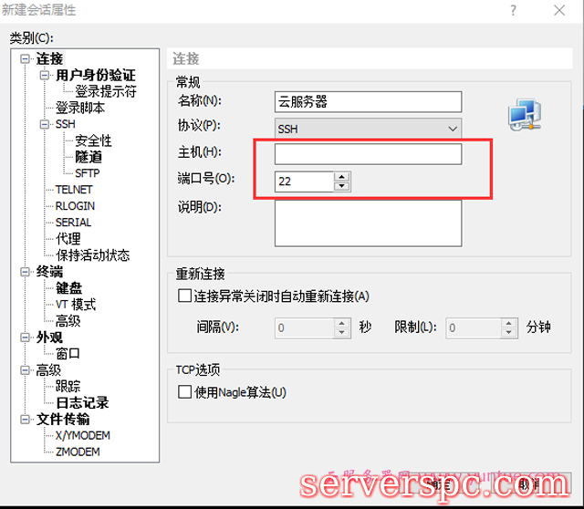 3.打开XShell新建会话,在主机那输入公网IP,端口号22不变。