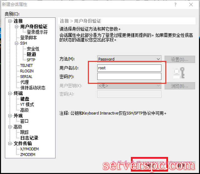 4.点击用户身份验证,用户名为root,输入自己的登录密码,点击确定。