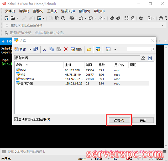 5.选择刚建好的会话,点击连接
