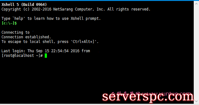 6.当黑色界面上出现[root@*******(每台服务器都不一样) ~]#的时候就表示连接成功了。