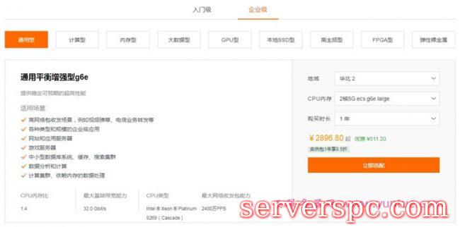 如果企业需要高性能的运服务器,推荐使用阿里云ECS通用型g6 2核8G6M云服务器,优惠价格仅:1266.84元/年,这款云服务器CPU与内存配比1:4 最新代企业级产品,性能全面提升,点击进入购买