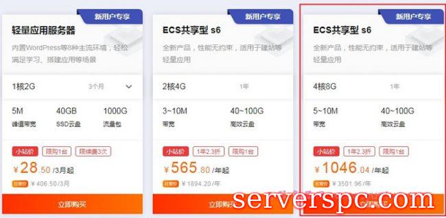 当然,如果企业囊中羞涩,也可以选择阿里云ECS共享型S6 4核8G5M云服务器,这一款对于中小型企业新上线的企业网站应用也够用了,价格仅:1046.04元/年(属于活动期优惠价),点击进入购买