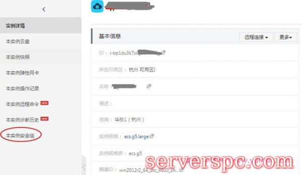 进入阿里云ECS服务器,点击”本实例安全组”。