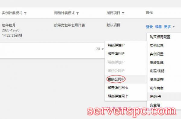 我们可以看到【更换公网IP】。