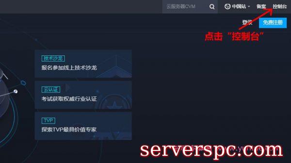 腾讯云登录之后,在腾讯云首页右上角,点击控制台