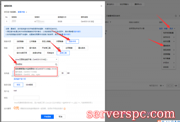 买好云服务器后,开始安装宝塔面板。点击服务器列表的【更多】》重装系统。