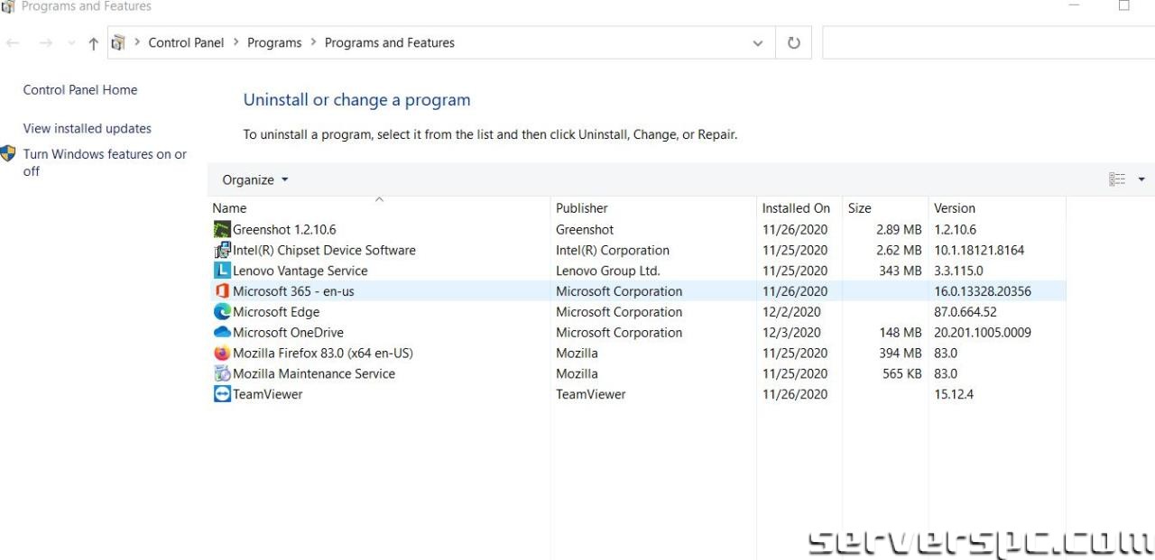 - 在下一个列表中,向下滚动已安装的程序并在其中找到.NET Framework 。