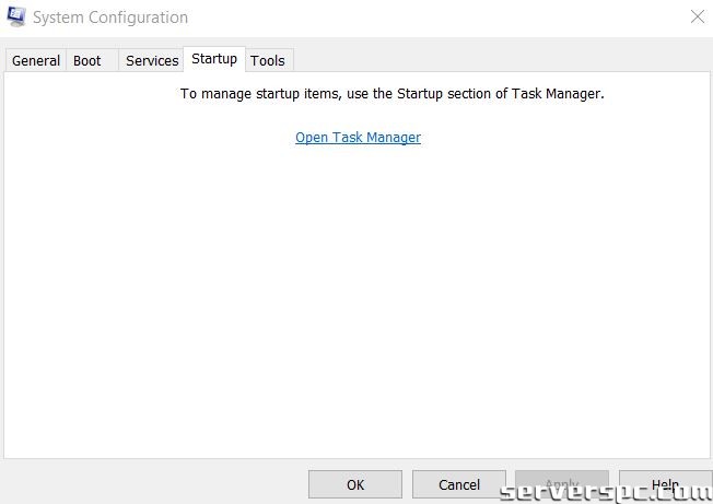 - 现在再次,从垂直菜单中导航到Startup 选项卡,然后单击说明Open Task Manager的链接。