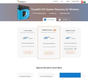 我们已经说过,此应用程序将帮助您解决iPhone上的任何问题,并在几乎所有iOS模型和版本上得到完全支持。因此,您需要花一些钱才能获得这个惊人的软件。但是,由于该软件完全是预算且友好的,因此无需担心。该软件花费大约29.99usd。但是,最初的价格为59.95usd,但正如我们现在所知,由于其所有产品的圣诞节交易,享受85%的折扣。这是您需要使用的链接来购买Tuneskit恢复工具。