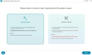 如果您的iOS设备出于某些原因被困在恢复模式下。因此,在Tuneskit中,您将获得两种不同的模式,即高级模式和标准模式,尽管如果您通常要自行修复它,那么它可能会有些复杂。