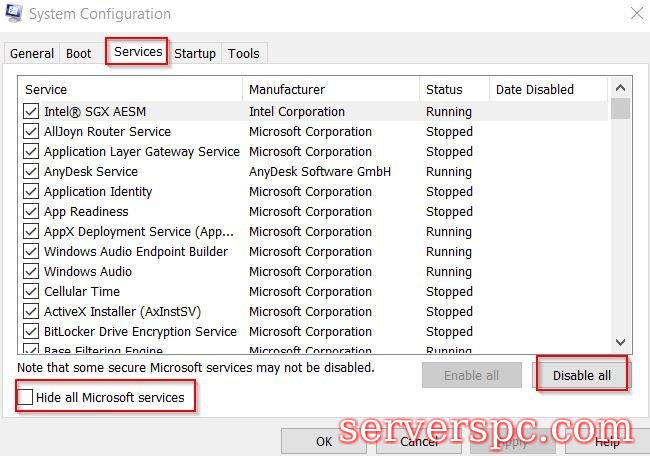 从这里,导航到TheService选项卡(在“水平菜单”上),请勾选所有Microsoft Services的选项的复选框,然后单击TheDisable所有选项卡。现在单击onapplyand,然后单击onok。(此处,如果提示您重新启动,请选择以后重新启动)。