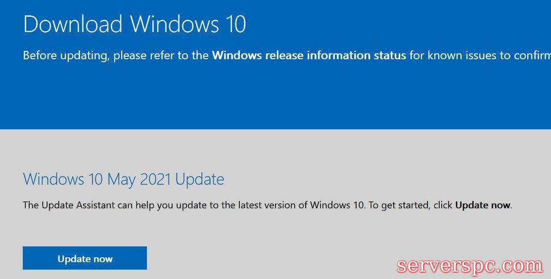 在下载Windows 10页面上,单击theupdate nowbutton(对于最新的更新助理),然后下载后,使用管理员访问启动它。通过遵循屏幕上的提示,并检查上述问题是否已解决或已解决或不是。