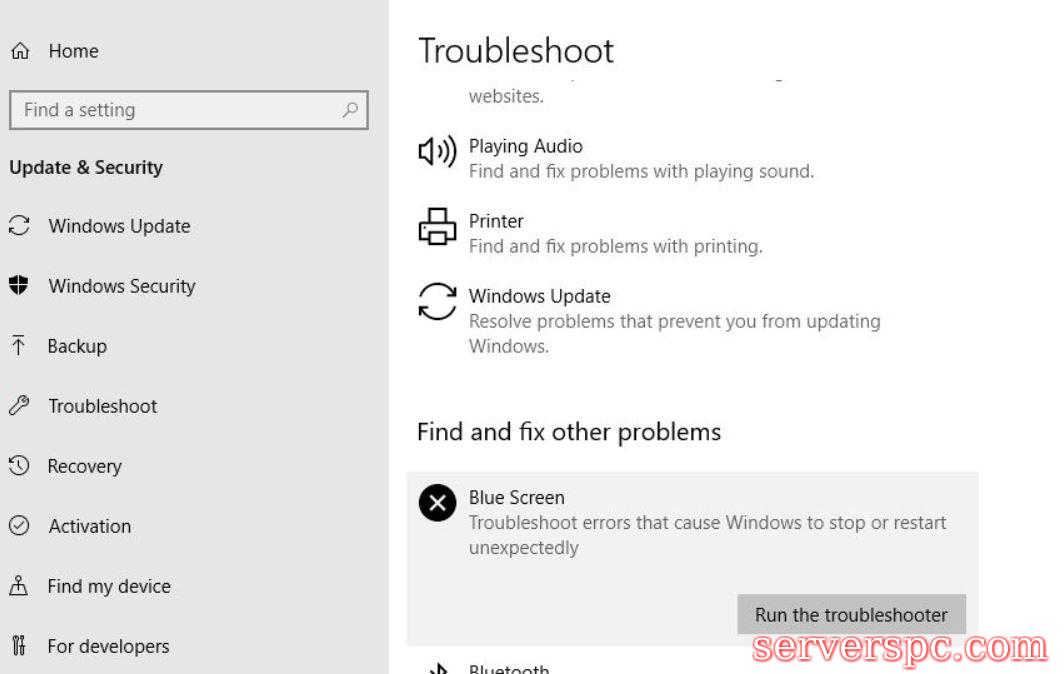 在左窗格菜单上的此处,导航到故障排除,然后从右窗格菜单中,单击BSOD,然后单击“运行“故障排除”选项卡。遵循屏幕上的指令以完成故障排除过程。文件2:运行SFC扫描: