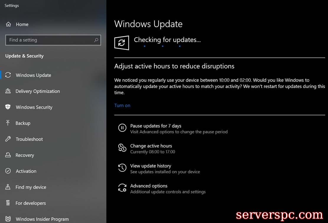 然后在“设置”窗口中,在右窗格上选择“更新选项”选项并让其处理。您的系统现在将自动搜索任何最新的可用更新并将其安装在计算机上。