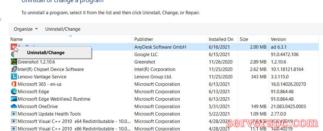 找到有问题的程序并右键单击它。然后单击卸载/更改选项。然后按照屏幕上的说明完成卸载进程。一旦您卸载了程序/应用程序,请再次下载并安装程序。预定,重新启动程序并检查该问题是否已解决。