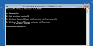 由于您关闭了命令窗口,因此您现在可以使用新密码登录到服务器。不要忘记从c:\ windows \ system32中删除utilman.exe文件,然后在删除它之前命名utilman.exe.exe.old返回utilman.exe。