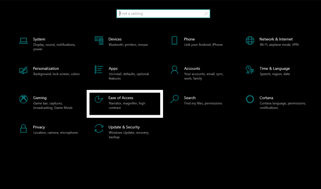 按Windows键 + i打开Windows设置窗口。单击“易于访问”。