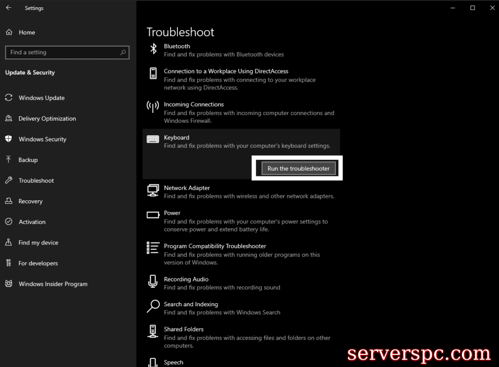 Advertisementson左窗格,单击故障排除。现在在右窗格上,查找键盘选项,然后单击。然后单击在其下方的运行“故障排除”按钮。