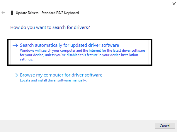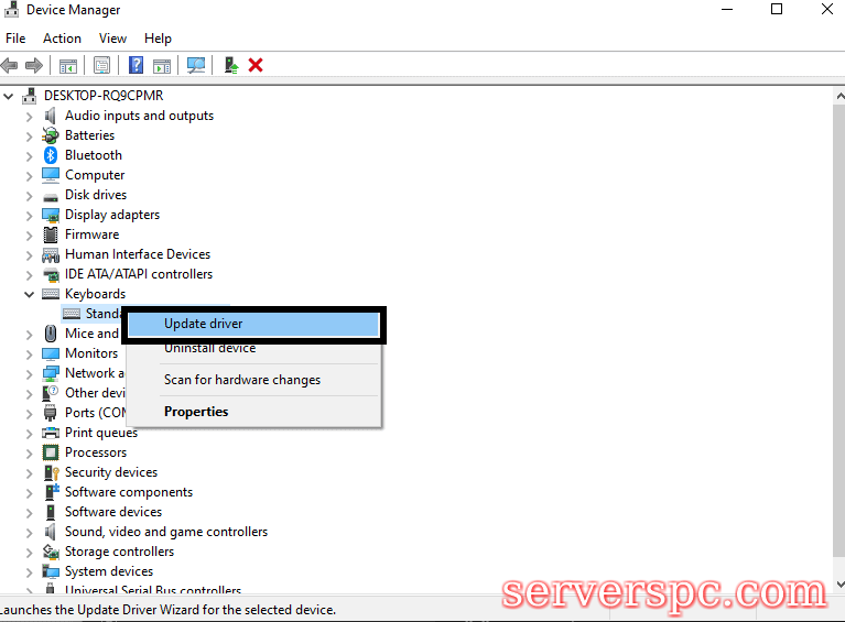 要自动更新它,请按Windows键 + R打开“运行”对话框。在对话框中的Enter Devmgmt.msc,然后单击“确定”。 “设备管理器”窗口将打开。通过双击它,然后右键单击默认键盘来扩展键盘。从此处的选项列表中选择更新驱动程序。