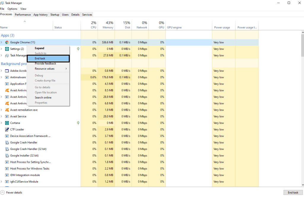 如果您在计算机上运行太多程序,那也可能是打字滞后背后的原因。每个Windows程序都占用资源,并同时开放了太多的程序将影响CPU的性能。 RAM将大部分被占用,为基本任务(例如输入完美工作)留出更少的空间。在Windows Taskbar上单击rights.Choose Task Manager。