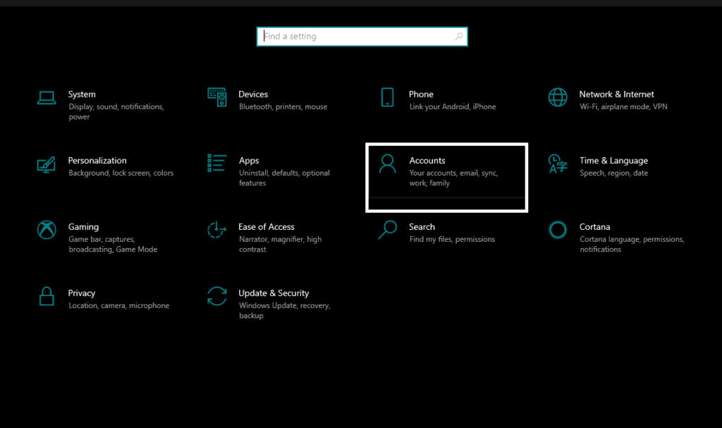 按Windows键 + i打开Windows设置Window。单击帐户。