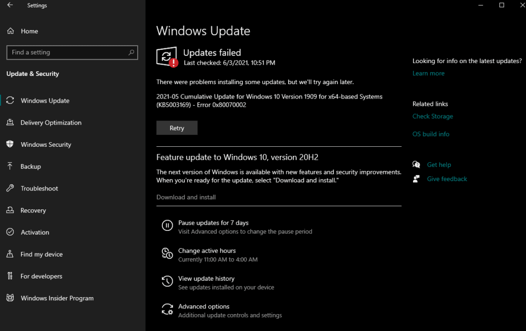 在左窗格上,单击Windows Update.ON右窗格,您将看到最新的Windows Update文件。单击此处下载以下载并在PC上安装最新的Windows 10更新。