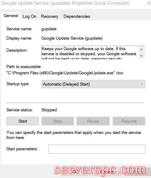 现在在“属性”窗口内,在“常规”选项卡下,将启动类型设置为自动(延迟开始)。在服务状态部分下,单击“开始”选项卡以强制启动服务,然后单击“应用程序”以保存更改。 Google Update Services(GUPDATEM)从服务列表中进行,并为其重复类似的步骤(第4、5、6、6)。完成时,重新启动计算机并检查上述问题是否已解决。