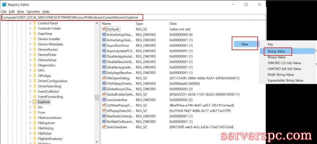 hkey_local_machine \ Software \ Microsoft \ Windows \ Currentversion \ explore